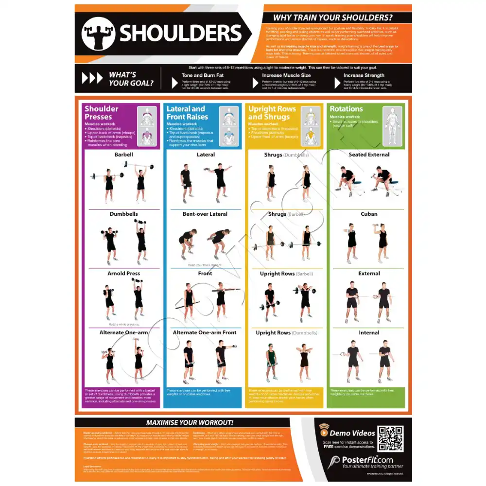 The Shoulders Exercise poster is a fantastic reference point for gym users of all abilities, providing an extensive range of shoulder exercises, training tips and advice.