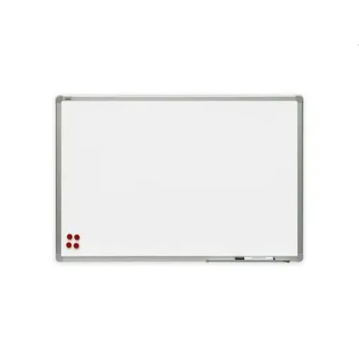 Rounded aluminium trim with wall fixings concealed by grey corner caps. Complete with pen tray and wall fixing kit.