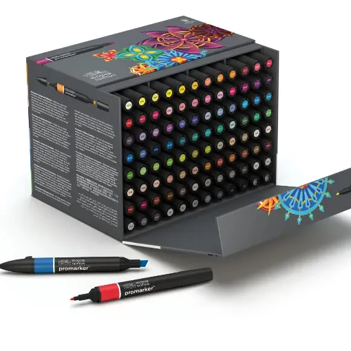 Dive into a vibrant world of color with the Promarker 96 Extended Collection. Boasting dual-tip pens, this set ensures precision detailing and broad fill versatility. Paired with the Promarker Blender, it's the ultimate toolkit for exploring diverse tonal possibilities.