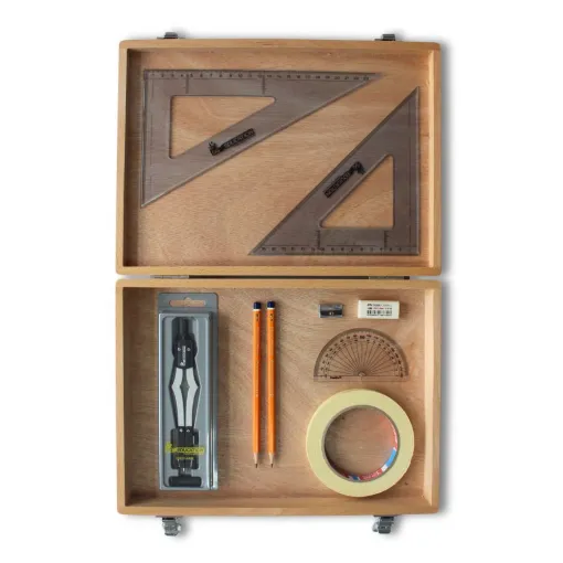 Wooden Box with Clips & Elastika Set Square