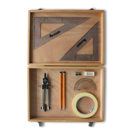 Wooden Box with Clips & Elastika Set Square