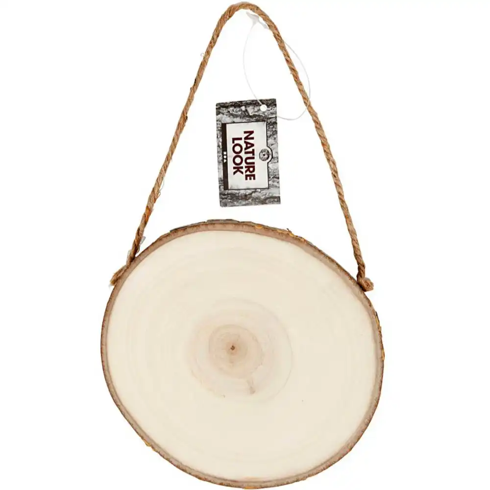 These classic wooden discs with a brown edge can be decorated in many ways. With the natural jute hangers, they are also very pretty without decoration. Covered with serviette technique or DecoMaché paper, painted, decorated with the branding iron, written on, stamped or left natural, the creative possibilities are diverse.
