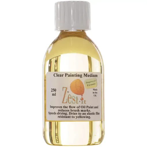 For the Traditional oil painter. The Zest-it Clear Painting Medium is very useful for applying glazes to the painting. It dries clear and quite quickly, it will also lift any dull parts of a painting giving an overall balance to the surface finish. It does not contain any varnish, this keeps the dried glaze as a more flexible film and in keeping with the rest of the paintings structure. The last glaze can of course be worked into before it dries to completion.