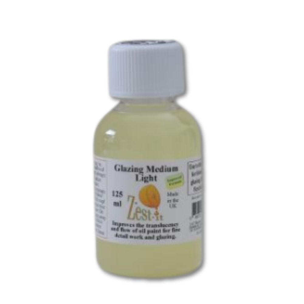 The New Zest-it Glazing Medium Light is a mix of Zest-it Brush Cleaner, Damar Varnish and Linseed Stand Oil. Use to thin transparent oil paint for glazing, only a small amount is needed. Zest-it Glazing Medium will improve the flow of oil paint, levels the brush marks and dried to a glossy flexible film with non-yellowing properties. Mix with oil paint to a thin soupy consistency apply in thin layers.
